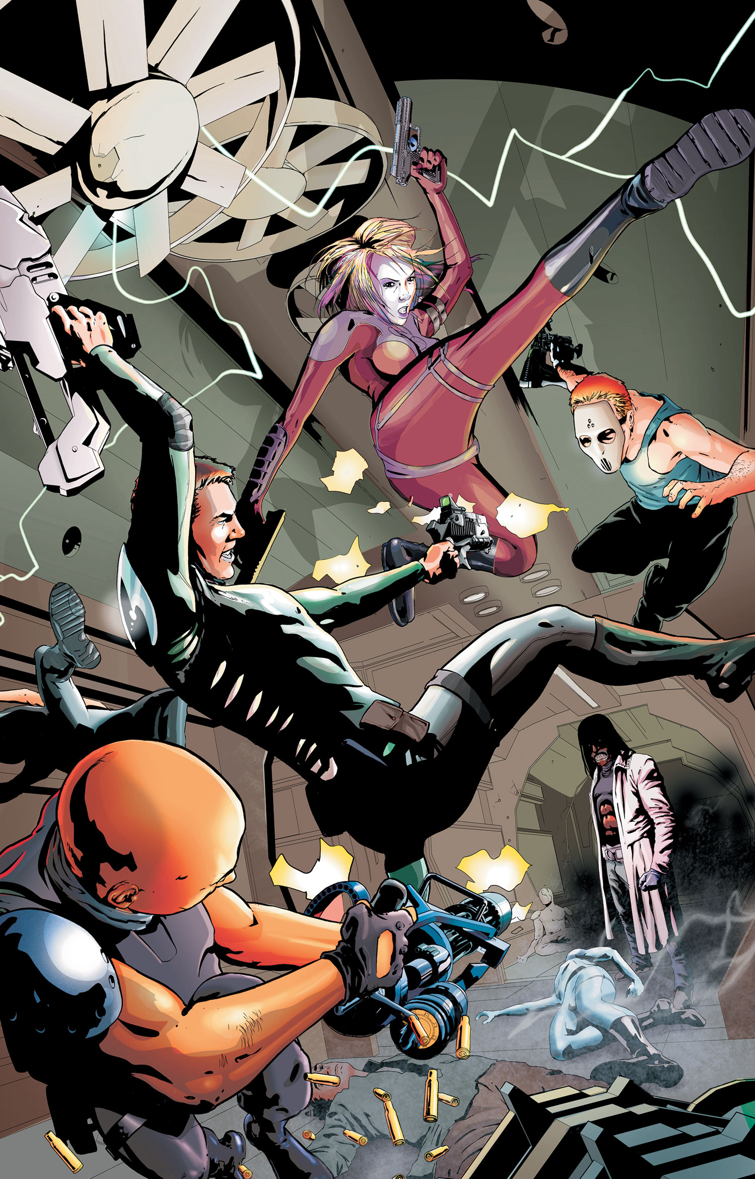 This was really the only time the book slowed down and unfortunately it’s necessary with only six issues to play with. Were this an ongoing the team could have devoted a few issues to what happened over the next twenty years. It’s a shame because these were an imaginative two pages as we see the President of the US assassinated for creating the INSURGENTS 1.o, watching the nation tear asunder into Red and Blue state governments from this final straw of political incompetence and control, and finally a new gleaming tomorrow under the guidance of President Chong. Chong stretches the budget line item for Science and the USA becomes the nanotech exporter to the world.
