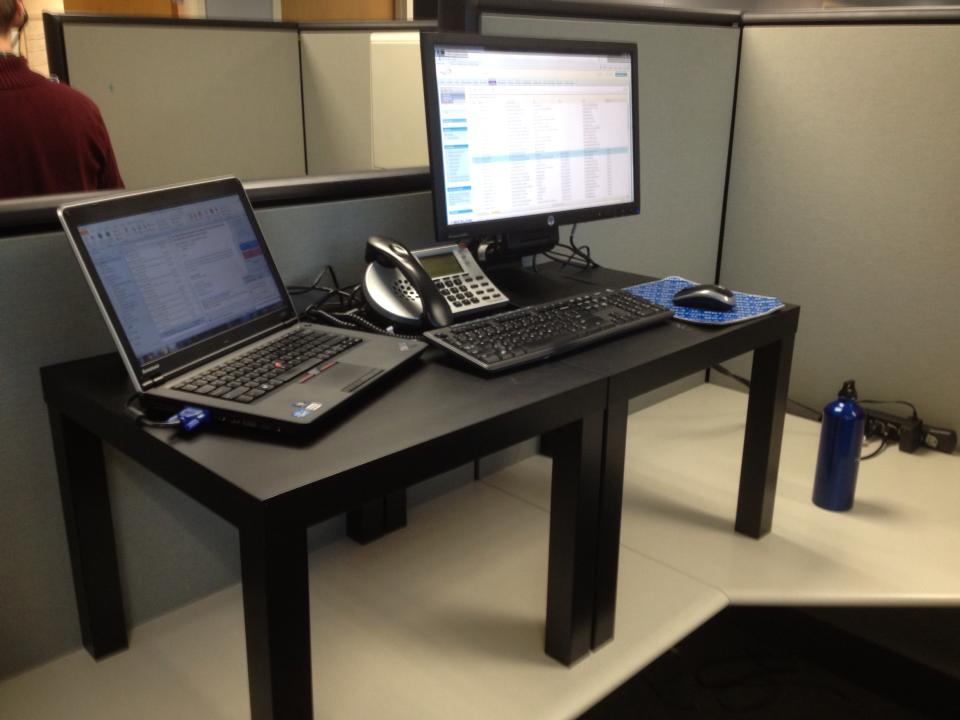 So, two of my industrious co-workers decided to join the life hacking craze and build what IKEA touts as a “standing desk!”