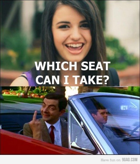 FRIDAY DELIVERS A BOUNTY OF SEAT CHOICES. ALL OTHER DAYS REBECCA HAS BEEN STRAPPED TO THE HOOD OF THE CAR. BLESSED BE FRIDAY