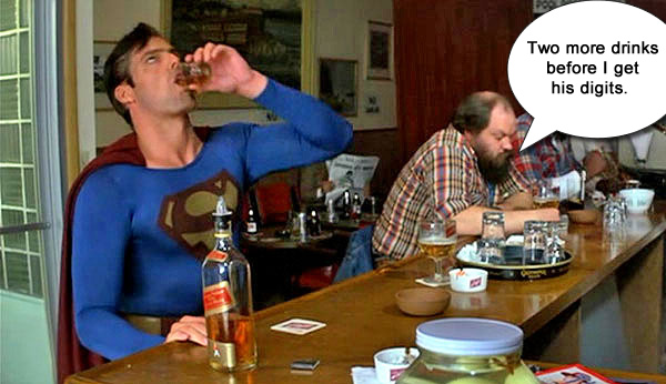 SUPERMAN III was one of the many times, and one of the best, where Bob Patey and laughed our asses for two straight hours MST3King the shit out of the horrible acting and plot. Other notable favorites were SUPERMAN IV and GODFATHER III.