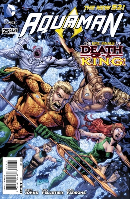 What reality has wrought is AQUAMAN #25: basically the end of Geoff scribing monthly books, presumably to give the other media channels in the WB a fighting chance against the miraculous Marvel movie machine. Honestly, with the casting away of GREEN LANTERN and there being no real Justice Society except on EARTH 2 the only thing left pouring out of Geoff’s keyboard is JUSTICE LEAGUE.