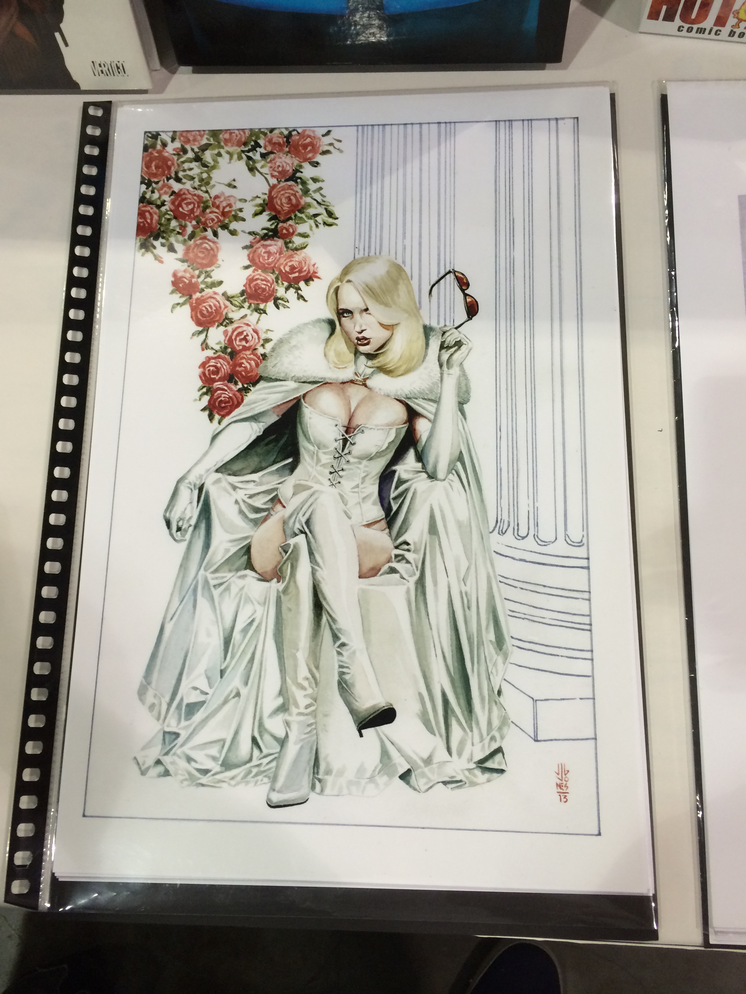 This is the art of JG Jones. While I know his fame is steeped in DC and BKV I have a hard spot for Emma Frost. JG is working on something and will reveal it soon. He told me, but stole my phone and then slipped me a forget me now pill.